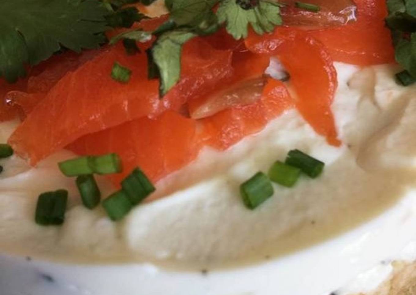 - Ajouter des lamelles de truite sur le dessus et quelques brins de ciboulette