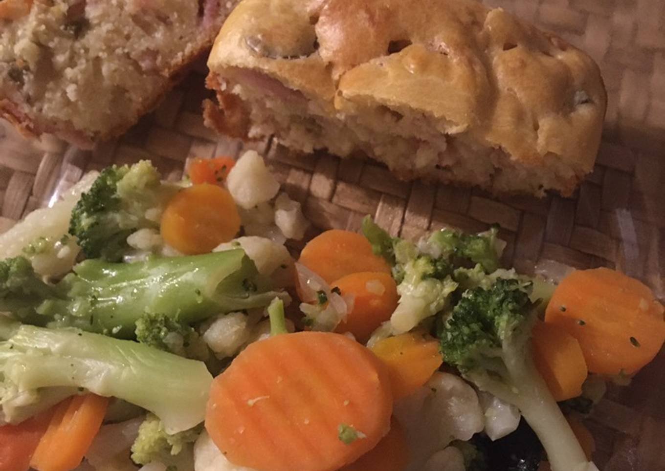 Cakes olives jambon accompagné d’un trio de légumes