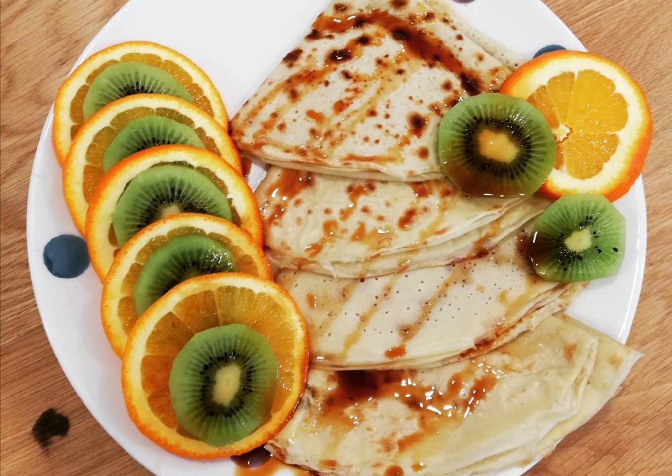 Si la pâte est un peu épaisse vous pouvez rajouter un peu de lait. - Une fois les crêpes disposées dans l assiette avec quelques fruits autour, versez un peu de caramel liquide. Bon appétit !!